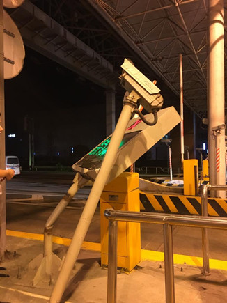 7月5日22點03分,機電設(shè)備維養(yǎng)中心接到臺州收費所當班班長小馬電話,稱該所ETC入口綜合顯示屏及抓拍攝像頭被一輛大客車撞彎,事故還導致出口欄桿不能正常工作,影響了出口車輛正常通行。