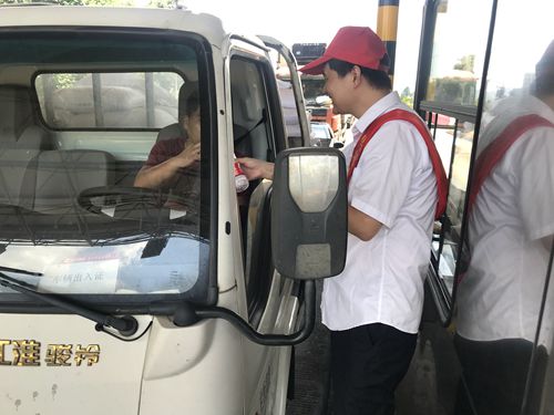 天氣雖炎熱,服務(wù)不“打烊”。 在活動(dòng)中,志愿者們不顧自身大汗淋漓,仍身披橫幅,頭戴小紅帽,面帶微笑向途經(jīng)收費(fèi)所的司機(jī)們遞上一杯杯綠豆湯、一瓶瓶礦泉水。同時(shí),大家還不忘宣傳行車安全注意事項(xiàng),提醒司機(jī)朋友在高溫酷暑時(shí)節(jié)多注意行車安全。