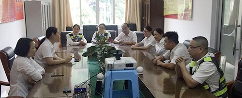 圖為公司副總經理章海峰帶領相關人員趕往現場檢查分流備戰情況 5月27日晚,公司副總經理章海峰帶領監察室、征費管理部負責人提前趕往臨海南收費所檢查分流備戰情況。