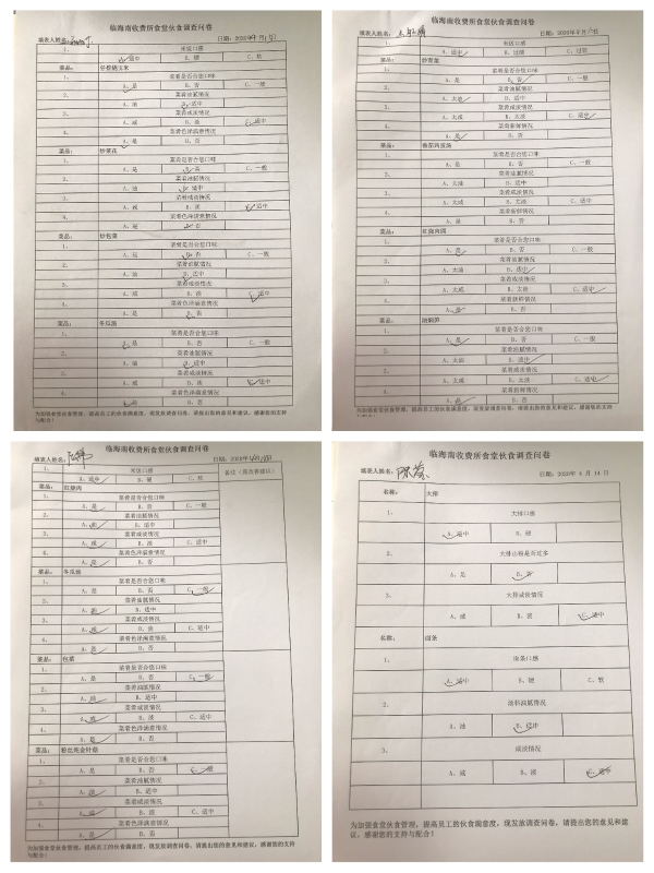 為了提高食堂滿意度,該所從菜肴口味、油膩度、咸淡、色澤等方面制定調(diào)查問(wèn)卷,讓大家真實(shí)客觀地表達(dá)各自的想法和建議。問(wèn)卷調(diào)查采用當(dāng)班用餐人員實(shí)名填寫問(wèn)卷調(diào)查表的形式進(jìn)行,通過(guò)收集的問(wèn)卷,每天中午定期召集食堂人員,反饋前一天的調(diào)查結(jié)果,根據(jù)員工的反饋建議,討論制定整改措施,確保將員工的意見及建議落到實(shí)處。除此之外,每逢傳統(tǒng)佳節(jié),定制相應(yīng)的節(jié)日菜譜,保證員工在站所也能感受到節(jié)日的喜慶和家的溫馨。