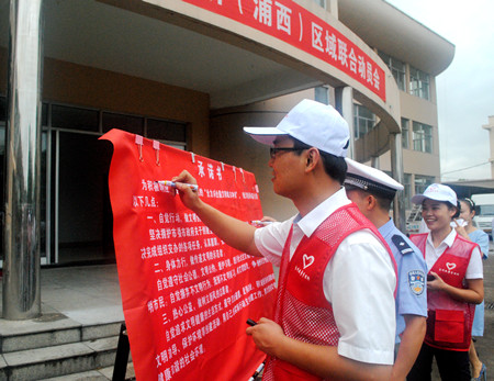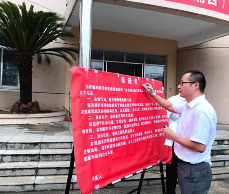 圖為公司副總經(jīng)理章海峰在承諾書上簽名 章海峰要求大家充分認識創(chuàng)建全國文明城市的重要性,立足崗位,樹窗口形象,展行業(yè)新風(fēng),用自己的實際行動支持創(chuàng)建工作。此次創(chuàng)建工作,時間緊、任務(wù)重,需要全體人員迅速行動起來,從我做起,從細節(jié)做起,從點滴做起,逐層壓實責(zé)任,確保萬無一失。文明城市創(chuàng)建工作不僅僅是政府的事,更是全體市民的事,也直接體現(xiàn)了一個城市的幸福指數(shù),大家要以“一流的城市環(huán)境、一流的公共秩序,一流的服務(wù)水平、一流的精神面貌”迎接測評。