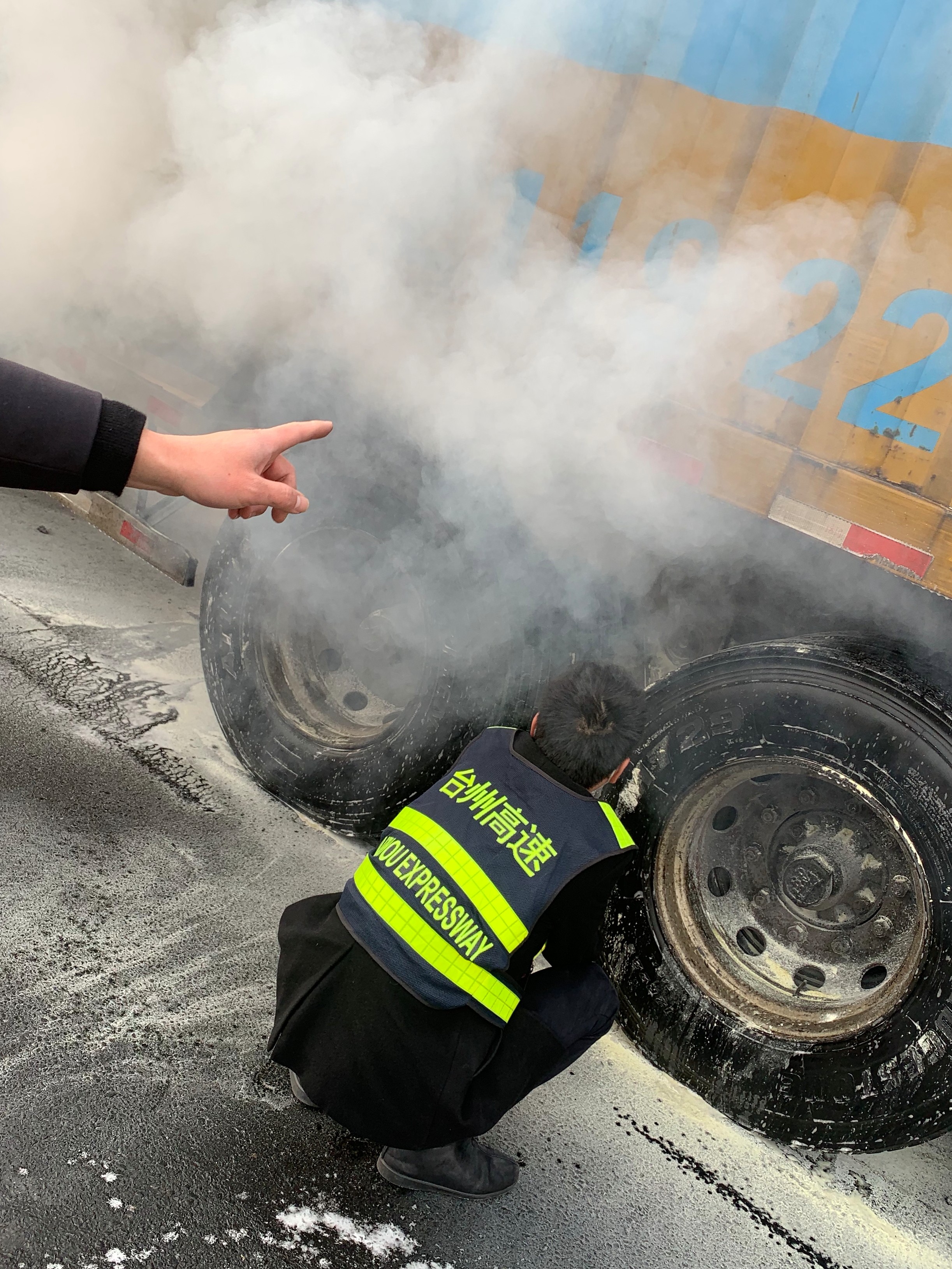 “嘭……”3月5日早上7:35分左右,臺州收費(fèi)所傳來一聲巨響,一輛車牌“閩”字開頭的大貨車緩緩駛來,其車廂后輪胎正冒火光,隨之白煙滾滾升起,駕駛員卻渾然不知,一路行駛。