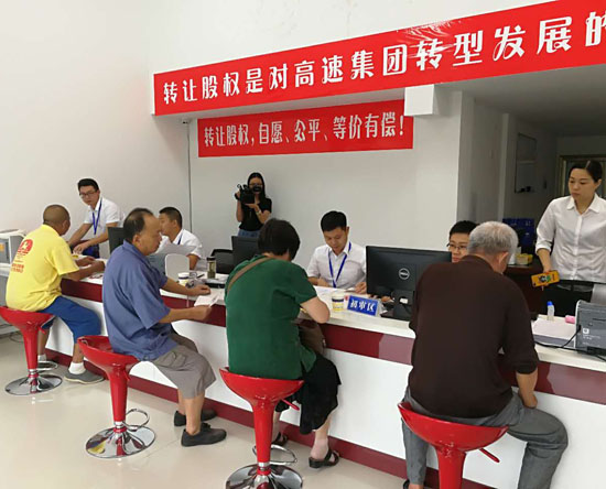 “我是經(jīng)臺(tái)州的朋友介紹,2003年時(shí)同自己公司的另外3名股東,以1.73元的價(jià)格合資買的臺(tái)州高速股份,2004年臺(tái)州高速就開始分紅了,而且每年分紅都很穩(wěn)定。”9月8日下午,來(lái)自蕭山的持165萬(wàn)法人股的股東鄭天生,特意從杭州坐高鐵趕到臺(tái)州高速股權(quán)椒江收購(gòu)點(diǎn)辦理股權(quán)轉(zhuǎn)讓手續(xù)。