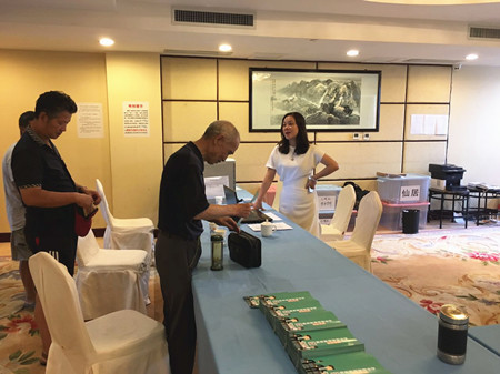 圖為集團副董事長、總經理張建平在椒江收購點為股東服務
