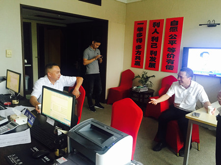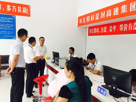 圖為集團(tuán)副董事長(zhǎng)、總經(jīng)理張建平在天臺(tái)收購(gòu)點(diǎn)詳細(xì)詢問收購(gòu)工作具體開展情況 張建平向各地方政府前期對(duì)公司股權(quán)收購(gòu)工作的支持表示感謝,他介紹了當(dāng)?shù)嘏_(tái)州高速股權(quán)收購(gòu)進(jìn)展情況,同時(shí)闡明收購(gòu)工作中存在的困難,需要地方政府繼續(xù)對(duì)我們的工作給予支持和幫助。三地政府都表示一定會(huì)全力支持這項(xiàng)工作。仙居縣分管公司股權(quán)收購(gòu)的常務(wù)副縣長(zhǎng)說,“放心吧,我們一起想辦法,先從持股較多的法人股入手,再化大力氣做小股東工作,一定會(huì)圓滿完成任務(wù)。” 張建平一行先后來(lái)到三地股權(quán)收購(gòu)點(diǎn),向收購(gòu)一線的工作人員表示親切的問候。張建平對(duì)大家的工作給予肯定,感謝所有人勤勤懇懇,無(wú)私付出,并希望大家繼續(xù)努力,共同實(shí)現(xiàn)目標(biāo)。工作人員詳細(xì)介紹了日常具體工作方法,他們緊跟公司股權(quán)收購(gòu)總體布局,并結(jié)合當(dāng)?shù)靥厥馇闆r,因地制宜,有序靈活地開展股權(quán)收購(gòu)工作。