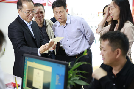 圖為市委常委、常務副市長董貴波在現(xiàn)場與公司總經(jīng)理張建平交流