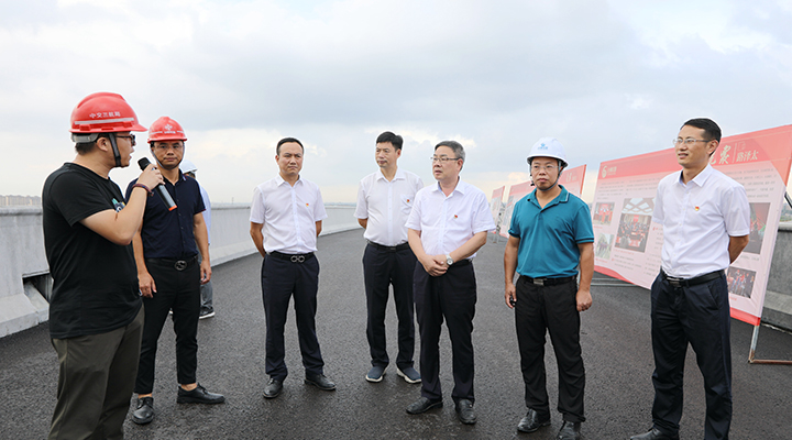 一行人先后來到路澤太三標(橋上架橋)、路澤太二標(機場樞紐)現場進行實地參觀,在現場聽取了路澤太人員的情況介紹,感受到了路澤太快速路的恢弘氣勢,并為作業人員們熱火朝天的干事氛圍所感染?,F場人員對路澤太公司只爭朝夕搶進度、精益求精重質量、全力以赴保通車的責任感和使命感表示高度贊賞。
