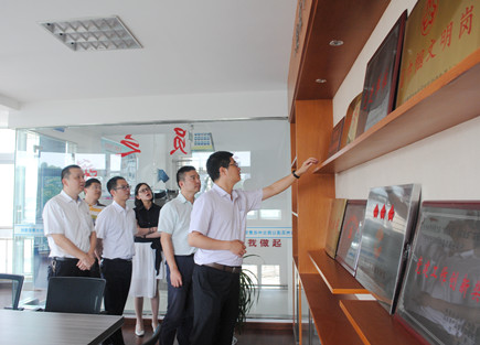 圖為團(tuán)省委基層工作部部長陳杰一行對臺州所取得的榮譽(yù)表示贊賞
