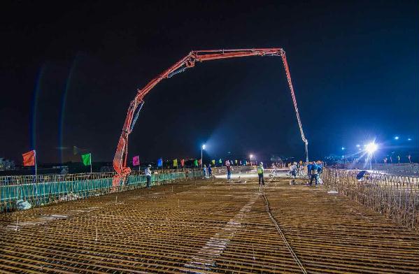 圖為4月21日凌晨,內(nèi)環(huán)路8#立交第二聯(lián)箱梁頂板澆筑場(chǎng)景。鐘 彪攝 8#立交工程位于黃巖區(qū)紅三村和紅四村,主線橋8#立交全長(zhǎng)1300多米,是臺(tái)州市首座全互通四層立交。東接九峰公園,西臨黃巖主城區(qū),上跨二環(huán)東路,南北連104國(guó)道,作為內(nèi)環(huán)路唯一一個(gè)位于城鄉(xiāng)接合部關(guān)鍵節(jié)點(diǎn),復(fù)雜的施工環(huán)境,繁瑣的交通組織,給工程的正常推進(jìn)帶來(lái)了嚴(yán)峻的考驗(yàn)。“我們?nèi)w參建人員根據(jù)現(xiàn)場(chǎng)情況不斷優(yōu)化方案,細(xì)化措施,狠抓落實(shí),連續(xù)作戰(zhàn),保證每月完成既定任務(wù)指標(biāo)?!?#立交項(xiàng)目現(xiàn)場(chǎng)負(fù)責(zé)人金小琳表示。 目前,8#立交主線橋梁順利貫通,離11月11日主線通車的目標(biāo)又邁進(jìn)了一大步。據(jù)臺(tái)州高速市政建設(shè)投資有限公司副總經(jīng)理何翔介紹,接下來(lái)的工作重心是在主體結(jié)構(gòu)完工的基礎(chǔ)上抓緊匝道及附屬構(gòu)筑物的施工,爭(zhēng)取讓臺(tái)州市民能盡早用上這條民心路。 (本文轉(zhuǎn)自《臺(tái)州日?qǐng)?bào)》2017年4月22日第01版) http://paper.taizhou.com.cn/tzrb/html/2017-04/22/content_794805.htmfrom=groupmessage&isappinstalled=1